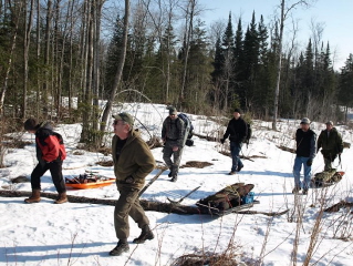 training, the participants go out in the yard to do some "dry work" with