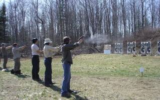 Early spring pistol matches... the scenario-style match is very popular. Simple props make it easy to set up the